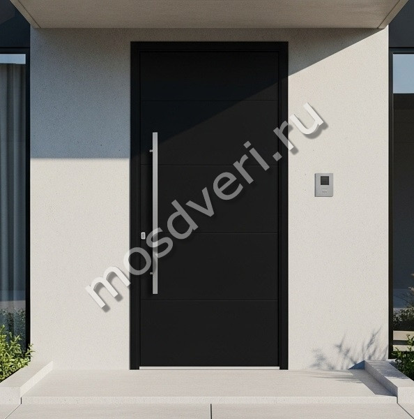 Высокая входная дверь в коттедж черная — объединяет эстетичность и высокую надёжность.